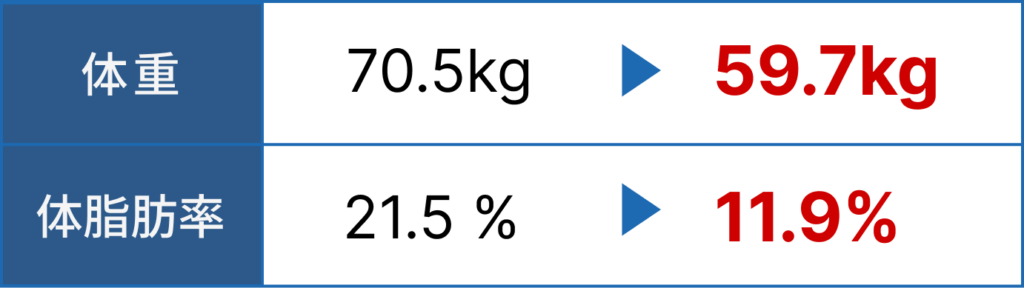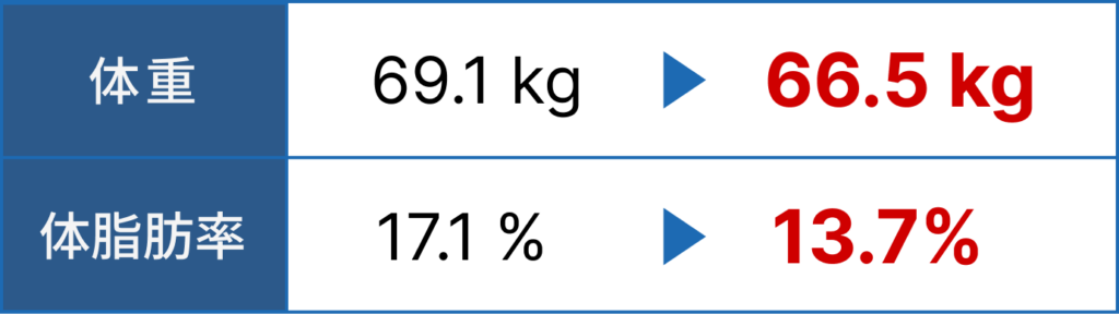 加えて徹底した食事管理で3ヶ月後の脅威の変化は一目瞭然!